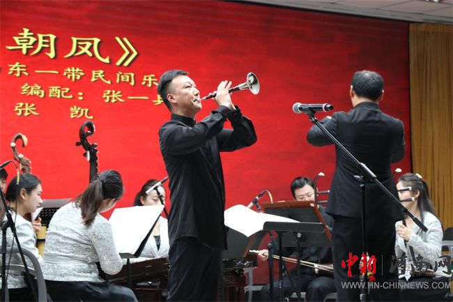 演出特意加入具有河南特色的民族管弦樂曲《豫調》,以河南民歌和戲曲音樂為素材并吸收民間鑼鼓節(jié)奏特點創(chuàng)作而成,激發(fā)出在座師生對“老家河南”的深厚感情。
