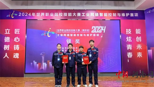 由智能制造學(xué)院尹靜文、鄭小慧教練團(tuán)隊(duì)指導(dǎo)的竇偉堂、郭鵬、原嘉偉、劉法照?qǐng)F(tuán)隊(duì)獲工業(yè)網(wǎng)絡(luò)智能控制與維護(hù)組賽項(xiàng)銀獎(jiǎng)。