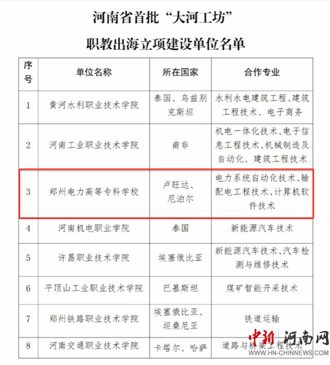 鄭州電力高等?茖W(xué)校喜獲河南省首批“大河工坊”職教出海立項建設(shè)單位
