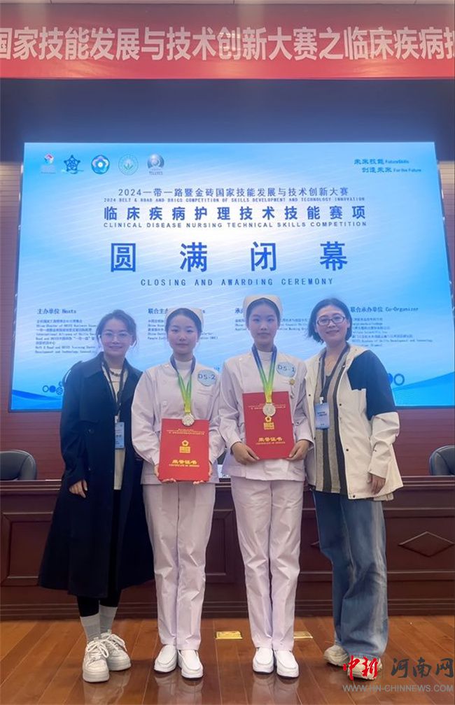 中新河南網(wǎng)11月8日電(馬琳) 10月31日至11月4日,2024“一帶一路”暨金磚國家技能發(fā)展與技術(shù)創(chuàng)新大賽臨床疾病護(hù)理技術(shù)技能賽項(xiàng)在天津醫(yī)學(xué)高等?茖W(xué)校舉行。經(jīng)過激烈的角逐,濟(jì)源職業(yè)技術(shù)學(xué)院護(hù)理專業(yè)參賽隊(duì)伍獲得該賽項(xiàng)團(tuán)體銀獎(jiǎng)、優(yōu)秀指導(dǎo)教師及優(yōu)秀組織獎(jiǎng)。