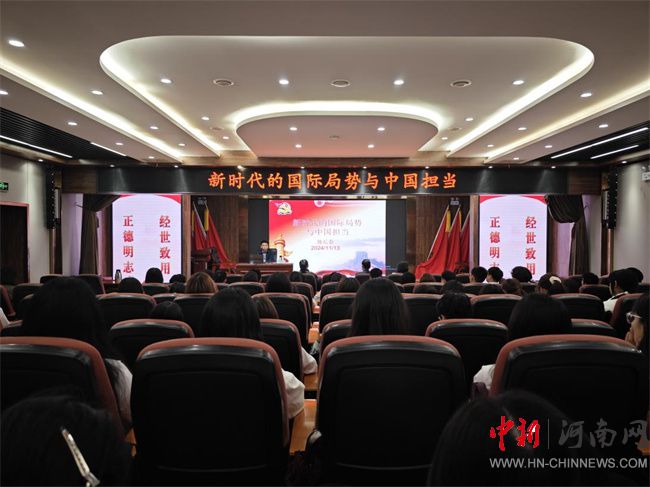 中新河南網(wǎng)11月14日電(寧爰懿) 11月13日,鄭州財(cái)稅金融職業(yè)學(xué)院副院長施長春以《新時(shí)代的國際局勢與中國擔(dān)當(dāng)》為題在思政報(bào)告廳為信息技術(shù)系學(xué)生上了一堂生動(dòng)的思政課。