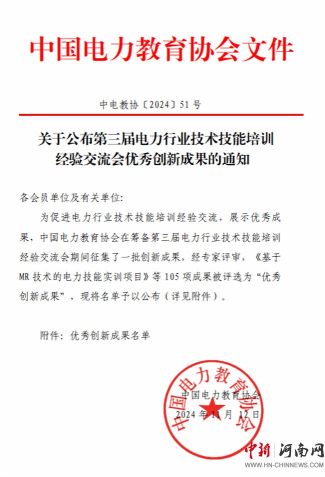 按照《關(guān)于征集2024年度電力行業(yè)技術(shù)技能培訓(xùn)創(chuàng)新成果的通知》要求,鄭州電力高等專科學(xué)校高度重視,培訓(xùn)管理部積極配合學(xué)院開展工作,重點(diǎn)圍繞新員工培訓(xùn)課程資源建設(shè)、專業(yè)實(shí)訓(xùn)基地建設(shè)以及培訓(xùn)過程中的教學(xué)創(chuàng)新方法、設(shè)備應(yīng)用等方面開展選題、材料審核等工作,確保申報(bào)成果高質(zhì)量完成。近年來鄭州電力高等?茖W(xué)校依托技術(shù)技能人才培育模式,開展形式多樣的培訓(xùn)項(xiàng)目,滿足不同人群的學(xué)習(xí)需求,為社會企業(yè)提供定制化的人才培訓(xùn)和技能提升服務(wù),利用信息化手段,依托數(shù)字化培訓(xùn)平臺,構(gòu)建企業(yè)知識生態(tài)系統(tǒng),支撐終身教育體系建設(shè)。