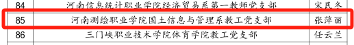 中新河南網(wǎng)11月22日電(張萍麗) 近日,中共河南省委教育工作委員會辦公室公布了全省高校“雙帶頭人”教師黨支部書記“強國行”專項行動團隊名單,河南測繪職業(yè)學(xué)院國土信息與管理系教工黨支部成功入選。