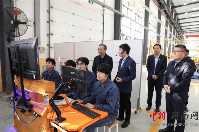 尹洪斌一行首先到鄭州電力高等?茖W(xué)校220kV智能變電站實(shí)訓(xùn)基地、新能源產(chǎn)教融合實(shí)訓(xùn)基地、"電亮未來"綠色智慧電力科普基地、工業(yè)互聯(lián)網(wǎng)產(chǎn)教融合實(shí)訓(xùn)基地等實(shí)訓(xùn)場所進(jìn)行了現(xiàn)場調(diào)研。調(diào)研過程中,尹洪斌對正在上課的學(xué)生提出了“認(rèn)真學(xué)習(xí)、精進(jìn)技能、健康成長”的殷切期許和美好祝愿。隨后召開座談會。