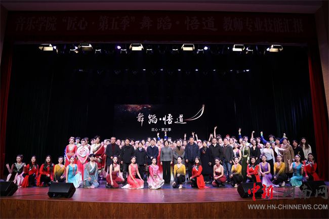作為音樂學院“金師培育工程”重要內容之一,“匠心”是音樂學院力促青年教師專業(yè)技能提升的一個品牌,旨在展現(xiàn)教師的專業(yè)風采和教學基本功,同時為學生起到引領和示范作用。本季演出以《舞蹈.悟道》為主題,巧妙地以一位即將退休舞蹈教師的學習與從教經(jīng)歷為主線,通過“聞道”“問道”“悟道”“傳道”四大篇章,生動地描繪了舞者的成長軌跡與教師的工匠精神,宛如一部精彩紛呈的藝術傳記。演出涵蓋了多種舞蹈形式,從古典優(yōu)雅到現(xiàn)代動感,從民族風情到創(chuàng)意新編,全方位展現(xiàn)了教師扎實的專業(yè)功底和豐富的藝術表現(xiàn)力。