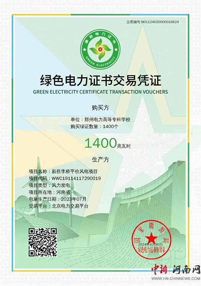 鄭州電力高等?茖W(xué)校在電力交易平臺購買綠色電力證書交易