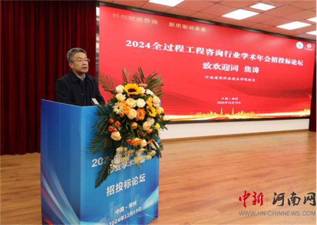 中新河南網(wǎng)12月20日電 12月19日下午,由河南建筑職業(yè)技術(shù)學(xué)院、中新創(chuàng)達(dá)咨詢有限公司聯(lián)合主辦的2024全過程工程咨詢行業(yè)學(xué)術(shù)年會招投標(biāo)論壇成功舉辦。河南省注冊造價工程師協(xié)會會長劉志宏,河南省全過程工程咨詢產(chǎn)業(yè)技術(shù)創(chuàng)新戰(zhàn)略聯(lián)盟理事長、中新創(chuàng)達(dá)咨詢有限公司董事長楊明宇,鄭州一建集團(tuán)有限公司董事長、黨委書記周明軍,河南雙匯地產(chǎn)有限公司總經(jīng)理陶艷峰等出席會議,河南建筑職業(yè)技術(shù)學(xué)院領(lǐng)導(dǎo)焦?jié)⒂髂缓、王輝參加會議。來自全國各地的行業(yè)專家、學(xué)者、企業(yè)高管及河南建筑職業(yè)技術(shù)學(xué)院相關(guān)專業(yè)師生代表參加論壇,近10萬人次在線觀看會議直播。論壇由河南建筑職業(yè)技術(shù)學(xué)院副校長王輝主持。