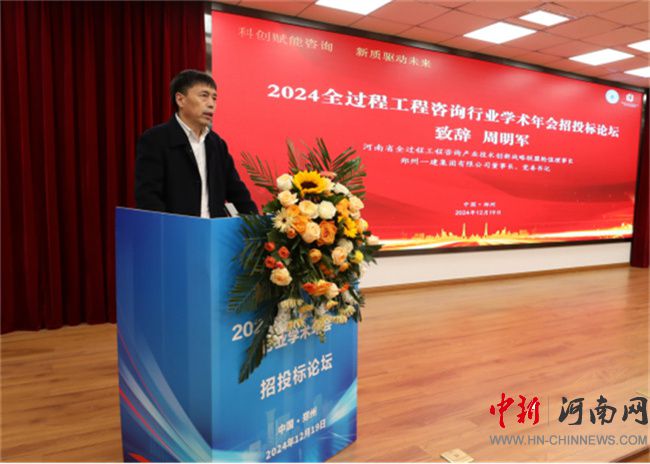 河南省全過程工程咨詢產(chǎn)業(yè)技術(shù)創(chuàng)新戰(zhàn)略聯(lián)盟輪值理事長、鄭州一建集團(tuán)有限公司董事長、黨委書記周明軍致辭。他指出,面對目前招投標(biāo)行業(yè)存在的問題與挑戰(zhàn),本次學(xué)術(shù)年會召開的意義重要而深遠(yuǎn)。相信通過這些精彩紛呈的學(xué)術(shù)報告、互動討論,我們將從中獲得新的啟示和靈感,為推動全過程工程咨詢行業(yè)的高質(zhì)量發(fā)展提供強(qiáng)大的智力支持和技術(shù)保障。