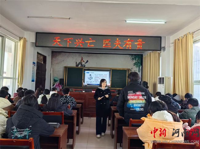 圖書捐贈儀式結(jié)束后,該校馬克思主義學(xué)院沈哲老師為泌陽縣高邑鎮(zhèn)初級中學(xué)八年級一班的學(xué)生帶來了一堂主題為《天下興亡 匹夫有責(zé)》的思政課。課程設(shè)計精妙,兼具思想深度、知識廣度與教學(xué)親和力,沈哲老師通過生動的講述,引領(lǐng)學(xué)生們暢游于紅色故事的浩瀚海洋,深刻領(lǐng)略閱讀與知識傳承的獨特魅力。課堂上,學(xué)生們熱情高漲,積極參與互動討論,現(xiàn)場氣氛熱烈而有序,充分展現(xiàn)了思政教育的吸引力與感染力。