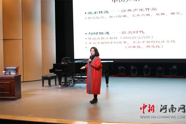 講座中,黃慧慧圍繞“聲之韻律”“情之真摯”“字之精準(zhǔn)”“味之韻味”“表之風(fēng)采”“養(yǎng)之修為”“象之意境”七個(gè)層面,深入剖析并闡釋中國(guó)聲樂理論的深厚底蘊(yùn)與獨(dú)特魅力,為師生指引聲樂藝術(shù)的認(rèn)知之路。講座高潮部分,音樂學(xué)院師生與黃慧慧互動(dòng)學(xué)習(xí),黃慧慧從聲音控制、情感表達(dá)、舞臺(tái)表現(xiàn)力及藝術(shù)形象塑造等多個(gè)角度,對(duì)每位演唱者進(jìn)行耐心點(diǎn)評(píng)與指導(dǎo)。