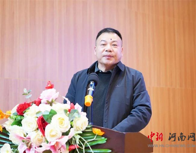 郭建生為儀式致辭。他對王巖一行的到來表示熱烈的歡迎,并向南陽師范學(xué)院幫扶該校建設(shè)發(fā)展表示感謝。他表示,南陽職業(yè)學(xué)院同南陽師范學(xué)院情深誼厚、源遠(yuǎn)流長,他強(qiáng)調(diào),幫扶合作框架協(xié)議的簽訂和南水北調(diào)中線工程水源地數(shù)字經(jīng)濟(jì)研究院和協(xié)同創(chuàng)新中心的揭牌,是兩校合作的又一重要里程碑,承載著兩所學(xué)校的共同期望和社會責(zé)任。他希望,未來兩校能夠以此次簽約為新的起點(diǎn),在專業(yè)建設(shè)、人才培養(yǎng)、師資隊(duì)伍建設(shè)、平臺建設(shè)和科技創(chuàng)新等方面展開深入交流與合作,不斷拓展合作領(lǐng)域,深化合作內(nèi)涵,實(shí)現(xiàn)優(yōu)勢互補(bǔ)、互利共贏,共同書寫校校合作的精彩篇章。
