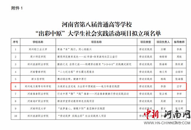 鄭州電力高等?茖W(xué)校在省 “出彩中原” 大學(xué)生實(shí)踐項(xiàng)目中獲批立項(xiàng)