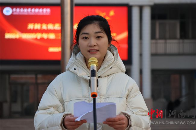 初等教育學(xué)院2022級小學(xué)語文教育1班張禾鑫同學(xué)作為學(xué)生代表發(fā)言。她表示,作為新時代的青年學(xué)子,要以科技賦能未來,在創(chuàng)新中錘煉技能;要以文化自信鑄魂,在傳承中彰顯擔(dān)當(dāng);要以家國情懷立心,在奮斗中成就自我。有決心、有信心在報效祖國中奉獻青春,在成就自我中書寫人生華章。