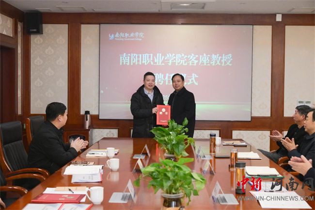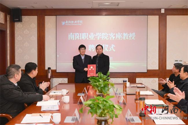 南陽職業(yè)學(xué)院執(zhí)行校長董聯(lián)軍頒發(fā)客座教授聘書