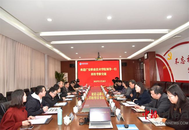袁馳對(duì)學(xué)校的辦學(xué)成績(jī)表示高度贊賞,并介紹了廣安職業(yè)技術(shù)學(xué)院的辦學(xué)歷史、辦學(xué)特色和發(fā)展成效。他指出,河南職院作為國(guó)家“雙高計(jì)劃”建設(shè)單位,整體辦學(xué)實(shí)力和育人成效位于全國(guó)前列,特別是在產(chǎn)教融合、校企合作以及科教融匯等方面特色鮮明、成效突出。他希望通過(guò)此次考察交流,全面學(xué)習(xí)河南職院的典型經(jīng)驗(yàn)和創(chuàng)新做法,推動(dòng)學(xué)校進(jìn)一步高質(zhì)量發(fā)展。