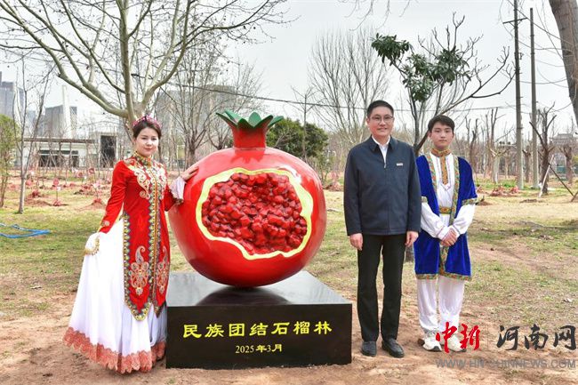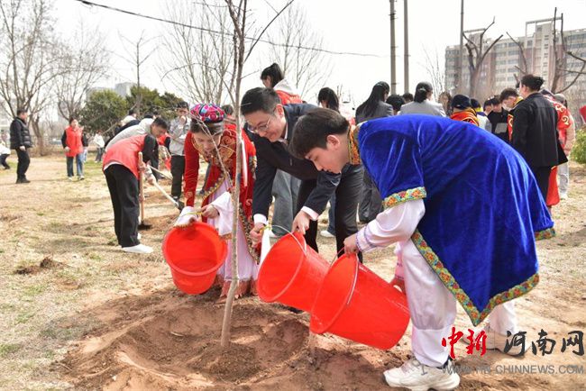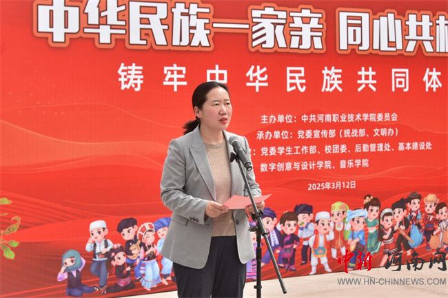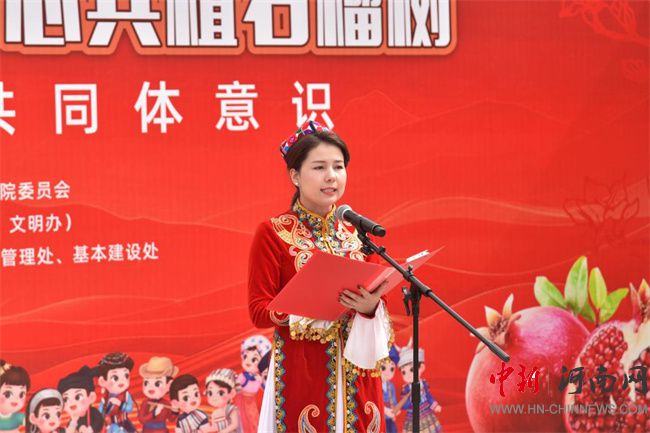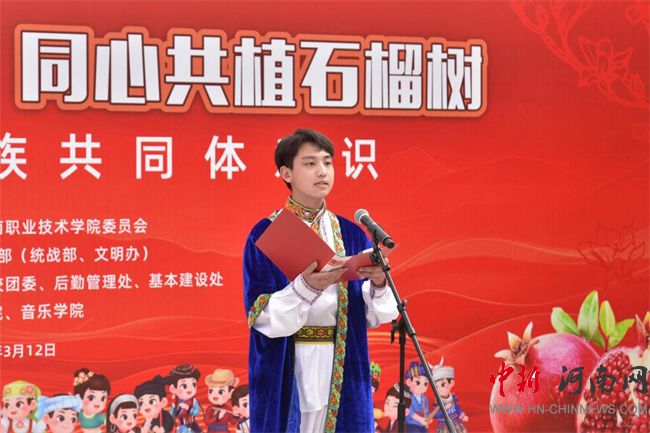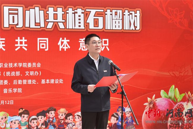 中新河南網(wǎng)3月13日電(隋納新) 3月12日是全國第47個植樹節(jié),當(dāng)天,河南職業(yè)技術(shù)學(xué)院舉行了“中華民族一家親,同心共植石榴樹”活動。校黨委書記厲勵出席活動,為學(xué)生講授鑄牢中華民族共同體意識思政課,并為“民族團(tuán)結(jié)石榴林”揭牌。校黨委委員、副校長任楓軒,黨政辦公室、黨委宣傳部、黨委學(xué)生工作部、校團(tuán)委、后勤管理處、基本建設(shè)處和各二級學(xué)院相關(guān)負(fù)責(zé)人,以及120余名各民族師生代表參加活動。校黨委副書記、工會主席田華主持活動。