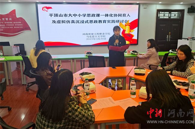 中新河南網(wǎng)3月25日電 為深化大中小學(xué)思政課一體化建設(shè),探索新時(shí)代思政教育創(chuàng)新路徑,3月20日下午,由河南質(zhì)量工程職業(yè)學(xué)院馬克思主義學(xué)院和平頂山市第一中學(xué)董朝霞名師工作室共同牽頭主辦的“大中小學(xué)思政課一體化協(xié)同育人暨虛擬仿真沉浸式思政教育實(shí)踐研討會(huì)”在河南質(zhì)量工程職業(yè)學(xué)院思政虛擬仿真教學(xué)中心舉行。來自河南質(zhì)量工程職業(yè)學(xué)院、平頂山市第一中學(xué)、第七中學(xué)、光明路小學(xué)的師生代表齊聚一堂,同上一堂思政課,共同體驗(yàn)虛擬仿真技術(shù)與思政教育的深度融合,探討新技術(shù)融入思政課教學(xué)的路徑與方法。