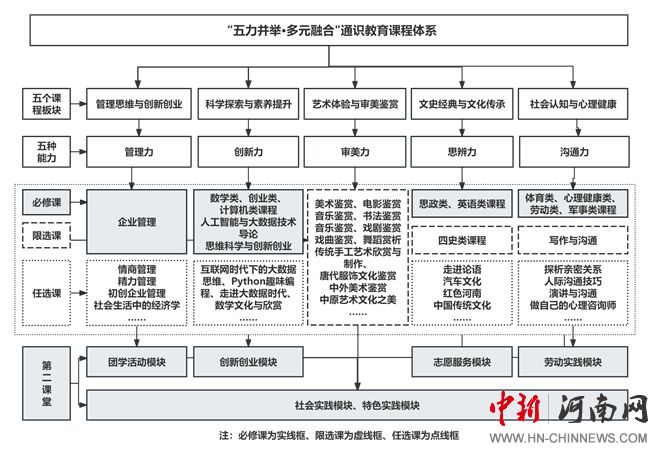 圍繞管理力、創(chuàng)新力、審美力、思辨力、溝通力這五大核心能力,精心設置系列課程與實踐活動,打破了傳統(tǒng)專業(yè)教育與通識教育之間的界限,強調(diào)“多元融合”,將人文社科、自然科學、藝術修養(yǎng)、商業(yè)管理以及創(chuàng)新創(chuàng)業(yè)等多個領域知識有機融合,形成跨學科的課程體系,拓寬學生的知識視野,激發(fā)創(chuàng)新思維,培養(yǎng)學生的綜合素質(zhì)。