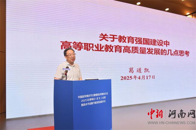 葛道凱作了題為《關(guān)于教育強(qiáng)國建設(shè)中高等職業(yè)教育高質(zhì)量發(fā)展的幾點(diǎn)思考》的主旨報(bào)告。他圍繞黨的二十屆三中全會關(guān)于教育工作的重要部署、落實(shí)全國教育大會精神和《教育強(qiáng)國建設(shè)規(guī)劃綱要(2024—2035 年)》要求,用詳實(shí)的數(shù)據(jù)和生動的案例,分析了教育強(qiáng)國建設(shè)中高等職業(yè)教育高質(zhì)量發(fā)展的思路。他表示,面對新時(shí)代教育發(fā)展的新趨勢,職業(yè)教育必須變革,要推動職業(yè)教育系統(tǒng)發(fā)展、統(tǒng)籌發(fā)展、融合發(fā)展,核心是處理好理論和實(shí)踐的關(guān)系、教學(xué)與科研的關(guān)系、投入和產(chǎn)出的關(guān)系、知識和精神的關(guān)系。
