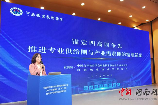 夏新顏以《錨定“四高四爭先”,推進(jìn)專業(yè)供給側(cè)與產(chǎn)業(yè)需求側(cè)的精準(zhǔn)適配》為題,分享了學(xué)校在專業(yè)建設(shè)和優(yōu)化調(diào)整方面的典型做法與發(fā)展成效。她指出,“四高四爭先”是新征程上奮力譜寫中國式現(xiàn)代化河南篇章的破題之策,學(xué)校主動聚焦國家和我省重大戰(zhàn)略需求,以專業(yè)優(yōu)化為突破口,促進(jìn)學(xué)校事業(yè)發(fā)展與經(jīng)濟(jì)社會發(fā)展同頻共振。一是以產(chǎn)業(yè)需求優(yōu)化專業(yè)結(jié)構(gòu),提高“適配度”。開展專業(yè)結(jié)構(gòu)優(yōu)化調(diào)整,實(shí)現(xiàn)“3個7”:即70%為理工科專業(yè)、70%新興戰(zhàn)略專業(yè)、70%學(xué)生面向全省重大戰(zhàn)略產(chǎn)業(yè)就業(yè),提高對接產(chǎn)業(yè)的“適配度”。二是聚焦專業(yè)群建設(shè),提升“貢獻(xiàn)度”。學(xué)校以“辦學(xué)能力高水平、產(chǎn)教融合高質(zhì)量”為目標(biāo),以提升人才培養(yǎng)質(zhì)量和社會服務(wù)能力為關(guān)鍵,推動專業(yè)群建設(shè)由“基礎(chǔ)好、條件好”向“服務(wù)好、支撐好”轉(zhuǎn)變。三是聚焦內(nèi)涵建設(shè),深化“雙融雙提升”。通過深化產(chǎn)教融合和科教融匯,促進(jìn)專業(yè)建設(shè)質(zhì)量和人才培養(yǎng)質(zhì)量的雙提升,聚力打造高水平特色專業(yè)品牌。