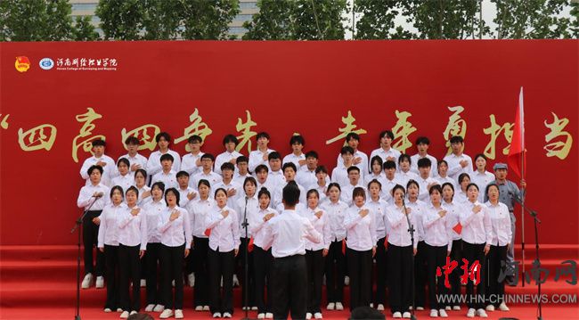 比賽在藝術(shù)系的開場表演中拉開帷幕。一首《我愛你中國》,通過藝術(shù)化的編排與和聲,為整場賽事定下激昂基調(diào)。隨后,各院系代表隊依次登臺,以同一首必選曲目《光榮啊,中國共青團》展現(xiàn)專業(yè)特色與青春風(fēng)采。