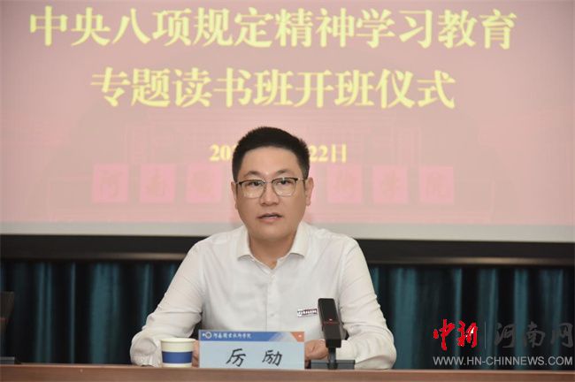 中新河南網(wǎng)5月25日電(郭曉娜) 5月22日至23日,河南職業(yè)技術(shù)學(xué)院舉辦年輕干部深入貫徹中央八項(xiàng)規(guī)定精神學(xué)習(xí)教育讀書班,推動(dòng)年輕干部在深學(xué)細(xì)悟中提高理論素養(yǎng),在鍛造優(yōu)良作風(fēng)中凝聚干事創(chuàng)業(yè)力量。校黨委書記厲勵(lì)作開班動(dòng)員講話。校黨委副書記、工會(huì)主席田華主持開班儀式和結(jié)業(yè)儀式,校黨委委員、紀(jì)委書記盛興文作廉潔教育專題報(bào)告。
