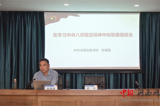讀書班還邀請(qǐng)中共河南省委黨校、黨的建設(shè)教研部孫強(qiáng)強(qiáng)博士作題為《在學(xué)習(xí)中央八項(xiàng)規(guī)定精神中知敬畏強(qiáng)擔(dān)當(dāng)》的輔導(dǎo)報(bào)告。