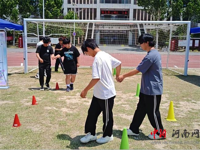 活動(dòng)當(dāng)天,從中午12:00至下午16:00,在校園田徑場(chǎng)上設(shè)置的游戲區(qū)域迎來了超過1000人次的熱情參與。同學(xué)們?cè)趨⑴c各個(gè)趣味游戲中盡情享受團(tuán)隊(duì)協(xié)作的樂趣,在互動(dòng)中深化了對(duì)自我和他人的理解。“你是我的眼”活動(dòng)鼓勵(lì)同學(xué)們蒙上眼睛,完全依賴同伴的引導(dǎo)穿越障礙,體驗(yàn)到了人與人之間的真誠(chéng)與信賴;“跳長(zhǎng)繩”、“心有千千結(jié)” 、“南水北調(diào)”、“珠行千里”、“不倒森林”等合作游戲鼓勵(lì)同學(xué)們與團(tuán)隊(duì)一同尋找解決問題的策略,鍛煉協(xié)作能力;而“投壺”、“袋鼠跳”活動(dòng),也讓同學(xué)們?cè)诟?jìng)爭(zhēng)中獲得自信。每一個(gè)活動(dòng)都成為心靈探索的入口,同學(xué)們沉浸式體驗(yàn)表達(dá)自我、探索自我,釋放情感的同時(shí)也感受到了來自同伴的支持與溫暖。