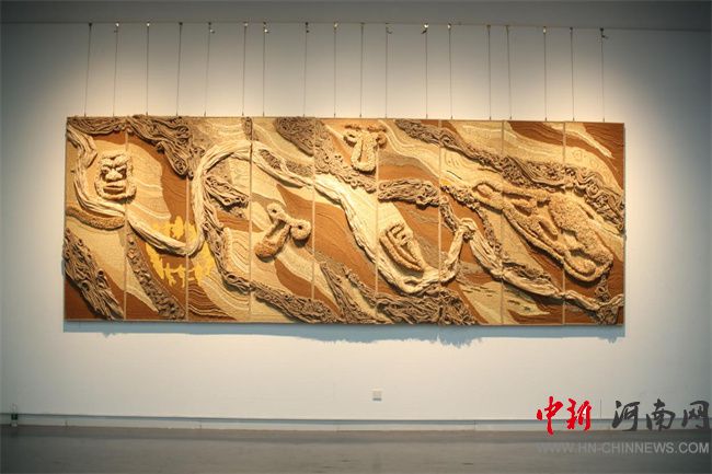 不同展區(qū)的作品各具特色,“黃河原生”展區(qū)的作品以黃河文化遺產(chǎn)為核心,通過天然材料編織與大地肌理的重構(gòu),喚醒人們對黃河文明的原生記憶;“非遺新生”展區(qū)聚焦中原非遺文化,借助數(shù)字技術(shù)探索傳統(tǒng)IP的當(dāng)代轉(zhuǎn)化,展現(xiàn)傳統(tǒng)文化的全新活力;“生態(tài)共生”展區(qū)則將工業(yè)痕跡轉(zhuǎn)化為生態(tài)警示符號,通過交互裝置和沉浸式空間,構(gòu)建人地共生的哲學(xué)場域,引發(fā)觀眾對宇宙生態(tài)藝術(shù)的深刻共鳴。