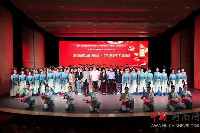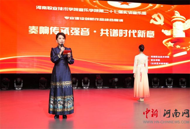 中新河南網(wǎng)5月26日電(夏藝文) 5月23日下午,河南職業(yè)技術(shù)學(xué)院音樂(lè)學(xué)院“奏響傳承強(qiáng)音·共譜時(shí)代新章”——第二十七屆實(shí)訓(xùn)音樂(lè)周專業(yè)建設(shè)創(chuàng)新作品綜合展演在音樂(lè)廳舉行。校黨委副書(shū)記、校長(zhǎng)夏新顏,校黨委委員、副校長(zhǎng)李玉峰,河南衛(wèi)視唐宮文創(chuàng)科技集團(tuán)副總經(jīng)理高凡現(xiàn)場(chǎng)觀摩指導(dǎo)。音樂(lè)學(xué)院全體師生共同觀賞展演。
