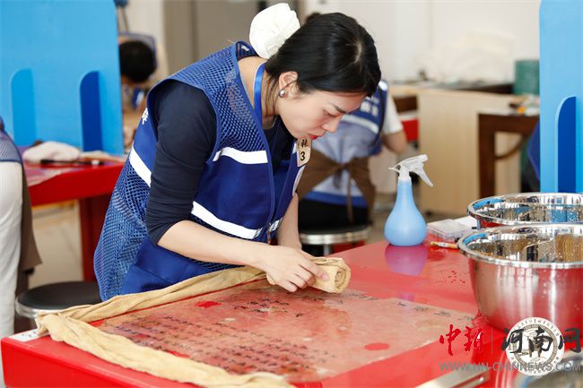 在各實操賽場內,參賽選手們全神貫注,展現(xiàn)出精湛的技藝。“木作文物”考場上,選手們手持鐵鋸,在木塊之間奮力抽動,專注于每一道工序;“紙張書畫文物”修復區(qū),修復師們小心翼翼地張開宣紙,細致入微地進行修復前的準備工作;“陶瓷文物修復”實操考場內,選手們在碎片間隙細致拼合,精準把控每道工序,力求以匠心之手還原瓷器本貌。