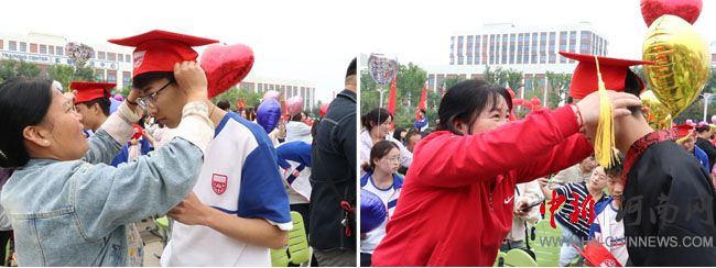 領(lǐng)導(dǎo)為學(xué)生代表加冠、家長為學(xué)生加冠