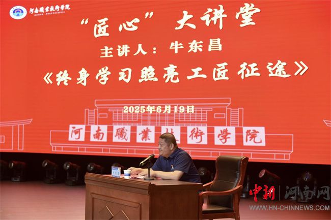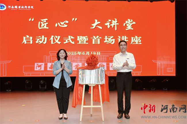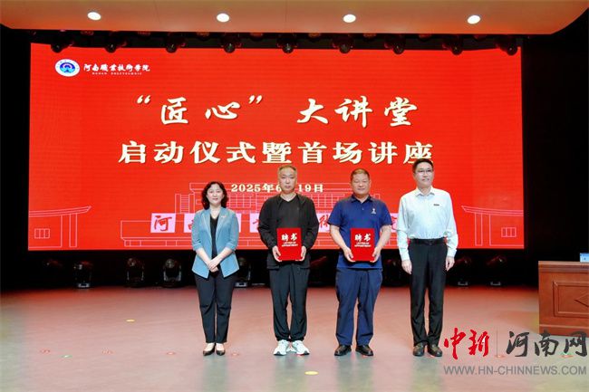 中新河南網(wǎng)6月21日電(秦雪、胡艷) 6月19日下午,河南職業(yè)技術(shù)學(xué)院“匠心”大講堂啟動儀式暨首場講座在音樂廳舉行。校黨委書記厲勵,黨委副書記、校長夏新顏為“匠心”大講堂揭牌,并為鄭州宇通集團有限公司焊接高級技師、焊接質(zhì)量責(zé)任人牛東昌和河南航天液壓氣動技術(shù)有限公司特級技師彭戰(zhàn)良兩位校友頒發(fā)企業(yè)導(dǎo)師聘書。校領(lǐng)導(dǎo)李玉峰、朱永寬出席啟動活動;顒佑尚|h委副書記、工會主席田華主持。