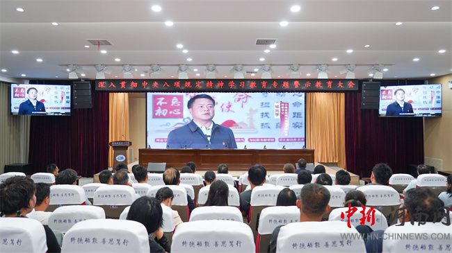 會上,與會人員集中觀看《巡“劍”破“風(fēng)”》警示教育片。