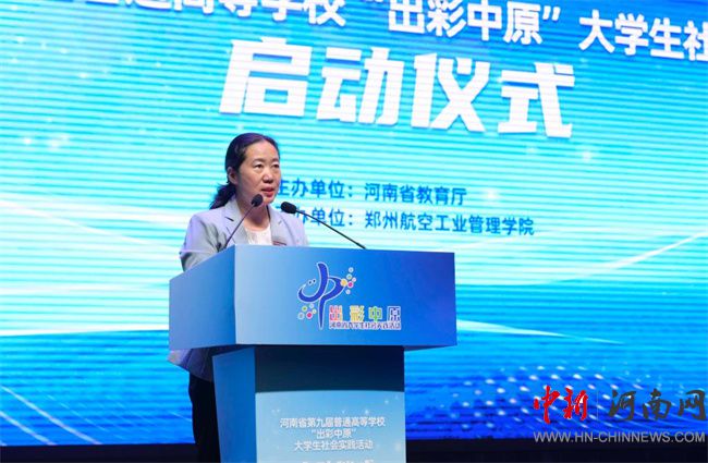 中新河南網(wǎng)6月24日電(周春雷) 6月20日上午,河南省第九屆普通高等學(xué)校“出彩中原”大學(xué)生社會(huì)實(shí)踐活動(dòng)啟動(dòng)儀式在鄭州舉行。省教育廳副廳長(zhǎng)、省委教育工委委員呂冰出席并講話,團(tuán)省委二級(jí)巡視員王鑫出席會(huì)議。全省178所高校社會(huì)實(shí)踐工作部門負(fù)責(zé)人、9所省級(jí)主題社會(huì)實(shí)踐活動(dòng)承辦高校學(xué)生處處長(zhǎng),以及部分駐鄭高校師生代表共計(jì)500余人參加啟動(dòng)儀式。河南職業(yè)技術(shù)學(xué)院作為唯一省級(jí)主題實(shí)踐活動(dòng)承辦高校代表應(yīng)邀參加啟動(dòng)儀式,校黨委副書記、工會(huì)主席田華代表學(xué)校作典型經(jīng)驗(yàn)發(fā)言。