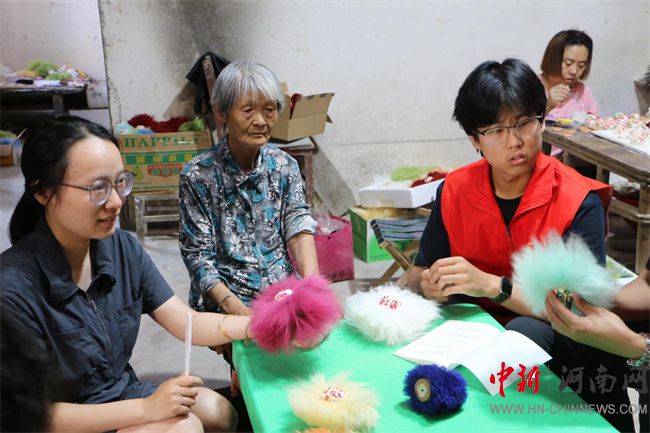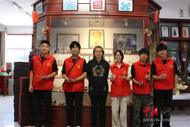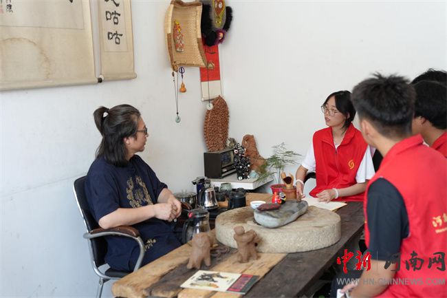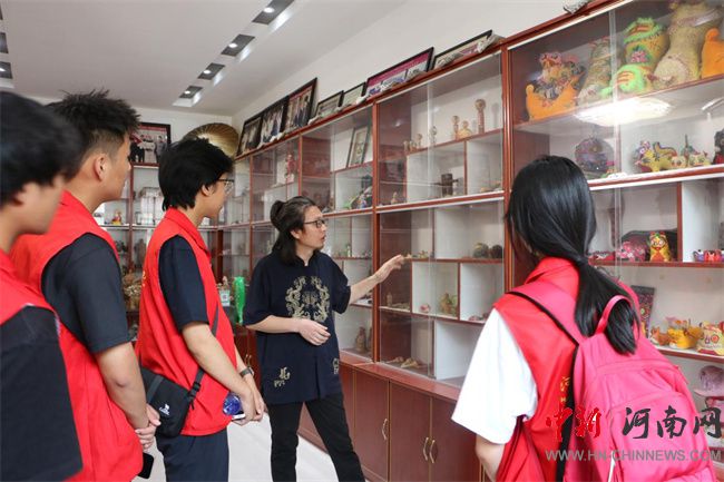 7月7日,團隊繼續(xù)在楊玘屯村探訪國家級非遺“皮老虎”制作技藝傳承人王居梅及其孫女陳夢茹。琳瑯滿目的皮老虎藏品展現(xiàn)出獨特的生命力。王居梅老人介紹了這項技藝繁復(fù)的工序——和泥、塑形、晾曬、彩繪、裝哨子,并強調(diào)必須使用浚縣地下3米深的黃河膠泥并經(jīng)過反復(fù)捶打。陳夢茹作為新一代傳承人,積極參與技藝傳承。在她們的指導(dǎo)下,實踐團成員動手體驗了部件粘貼、哨子嵌入等關(guān)鍵步驟。