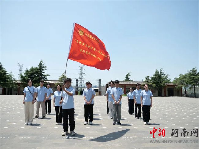 行前,河南職業(yè)技術(shù)學(xué)院黨委書記厲勵為實踐團(tuán)隊授旗,并與出征隊員合影留念。他希望同學(xué)們在“用腳步丈量河南——行走的思政課”這一生動實踐中,深切感悟思想偉力,勇?lián)鷱?qiáng)國復(fù)興時代重任,將“愛黨、報國、擁軍、榮校”的大志向熔鑄于知行合一的奮斗征程,用青春腳步丈量中原熱土,以挺膺之姿答好時代答卷。