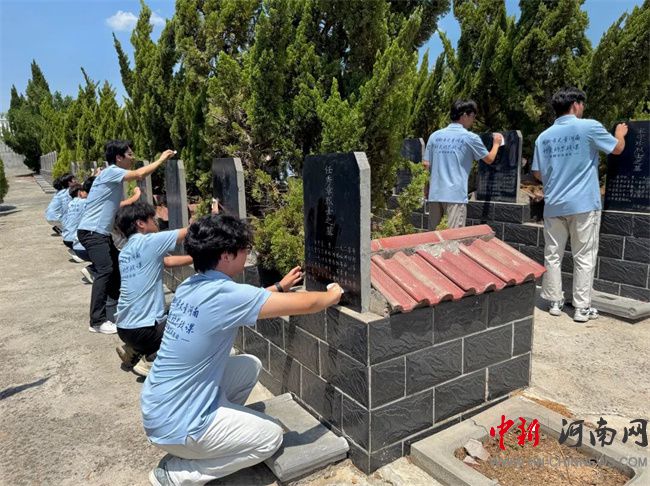在輝縣市烈士陵園,實踐團(tuán)成員手持抹布擦拭墓碑,在莊嚴(yán)肅穆的紀(jì)念碑前駐足瞻仰,追溯先烈足跡,以實際行動表達(dá)對革命先輩的無限敬仰與深切追念,讓紅色基因在青年大學(xué)生心中深深扎根。“我們今天的幸福生活,正是無數(shù)這樣的英雄用生命換來的。”河職師生用腳步丈量紅色土地,用心靈感悟著先輩的精神密碼,每一次擦拭都是無聲的對話,每一次凝視都是跨越時空的致敬。