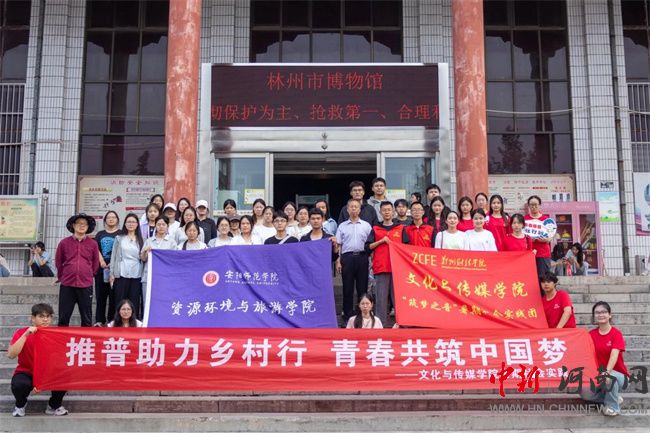 實(shí)踐團(tuán)成員與林州博物館工作人員安陽(yáng)師范學(xué)院師生合影留念