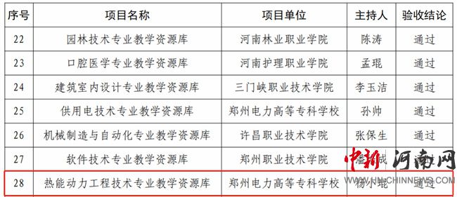 中新河南網(wǎng)8月1日電(魏子寒) 近日,河南省教育廳辦公室印發(fā)了《關(guān)于公布河南省職業(yè)教育專業(yè)教學(xué)資源庫2020—2021年驗收結(jié)果的通知》(教辦職成〔2025〕196號),鄭州電力高等專科學(xué)校能源與動力工程學(xué)院的電廠熱能動力裝置專業(yè)教學(xué)資源庫順利通過驗收。