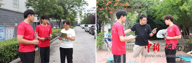 實踐團成員向社區(qū)居民分發(fā)宣傳扇、宣傳頁