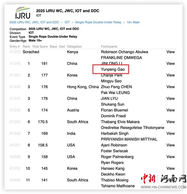 高云鵬是河南女子職業(yè)學(xué)院體育與健康學(xué)院運動健康指導(dǎo)專業(yè)23級學(xué)生,他在跳繩項目上已訓(xùn)練長達(dá)六年。去年12月,他在全國跳繩錦標(biāo)賽中脫穎而出,獲得入圍世錦賽的資格。在今年6月結(jié)束的2025全國跳繩聯(lián)賽(長沙站)中,他一舉奪得了個人花樣跳、30秒單搖跳、3分鐘單搖和4×30秒單搖接力四項冠軍。