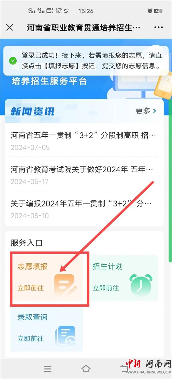 1.考生可通過(guò)“河南省職業(yè)教育貫通培養(yǎng)招生服務(wù)平臺(tái)”(網(wǎng)址:http://zjgt.haeea.cn)(簡(jiǎn)稱招生服務(wù)平臺(tái))進(jìn)行網(wǎng)上志愿填報(bào)。