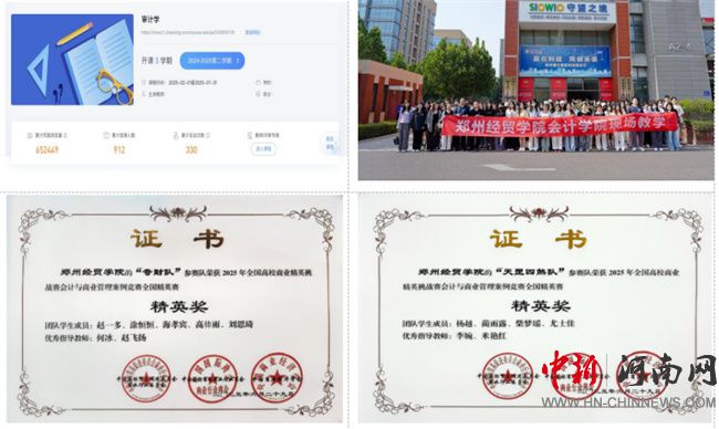 改革“組合拳”落地,育人質(zhì)量提升。團(tuán)隊(duì)打造的《審計(jì)學(xué)》在線開放課程在超星學(xué)習(xí)通平臺(tái)受歡迎,累計(jì)選課超900人次,瀏覽量破64萬次。應(yīng)用創(chuàng)新教學(xué)方法后,課堂互動(dòng)率提升40%,學(xué)生自主學(xué)習(xí)能力增強(qiáng),團(tuán)隊(duì)凝練的二元三階五步混合式教學(xué)法被省內(nèi)2所高校借鑒推廣。審計(jì)學(xué)專業(yè)學(xué)生在權(quán)威學(xué)科競賽中屢創(chuàng)佳績,2025年獲2項(xiàng)國家級獎(jiǎng)項(xiàng)。通過“現(xiàn)場教學(xué)”“企業(yè)導(dǎo)師進(jìn)課堂”等活動(dòng),300余名學(xué)生實(shí)現(xiàn)理論與實(shí)踐的無縫銜接。