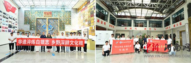 7月3日,實(shí)踐團(tuán)成員順利抵達(dá)夢祥銀創(chuàng)小鎮(zhèn)。首站來到集展覽、教育、研究功能于一體的夢祥銀宮博物館——這座跨越古今、融匯中外的文化殿堂,館內(nèi)設(shè)6大展廳,藏有上千件珍貴文物,系統(tǒng)展陳了歷代中國銀飾、銀器的經(jīng)典之作。跟隨著講解員的腳步,成員們漫步展廳,細(xì)細(xì)觀賞器物上精美細(xì)膩的紋飾與質(zhì)樸本真的色澤,在銀器制作的精妙工藝?yán)镉|摸歷史的厚重,在每件藏品的故事中梳理白銀發(fā)展的脈絡(luò),沉浸式感受非遺文化的獨(dú)特魅力。為深入探究銀制品的生產(chǎn)奧秘,實(shí)踐團(tuán)隨后走進(jìn)白銀智能車間,實(shí)地探訪產(chǎn)品從設(shè)計(jì)到成型的全流程。在銀飾制作區(qū),“一錘一鏨一匠心 一師一界一乾坤”的標(biāo)語格外醒目:鏨刻工藝在銀器表面雕琢出細(xì)膩如絲的紋理,掐絲工藝將細(xì)絲勾勒得精巧靈動(dòng),點(diǎn)藍(lán)工藝讓色彩在釉料中流轉(zhuǎn)生韻,琺瑯工藝更將器物裝點(diǎn)得精美絕倫……每一道工序都令成員們驚嘆不已。然而這般精美背后,是工匠們指腹磨破、老繭層疊的付出。一位深耕行業(yè)十余年的老師傅坦言:“沒有這層層老繭,哪能敲打出紋路清晰、肌理分明、質(zhì)感十足的器物?看著自己親手打磨出的新飾品,心里才叫踏實(shí)。”此情此景,讓實(shí)踐團(tuán)成員真切體會到“守”藝人精益求精的堅(jiān)守,更讀懂了大國工匠精神的深刻內(nèi)涵;顒(dòng)尾聲,團(tuán)隊(duì)走進(jìn)夢祥黨建室,通過一張張照片、一段段文字,了解了企業(yè)發(fā)展歷程中浸潤的紅色基因,深切體會到黨組織在企業(yè)成長壯大中的引領(lǐng)力量。
