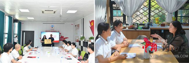 7月5日,實(shí)踐團(tuán)成員于夢祥公司二樓會議室舉行校企交流會,雙方圍繞非遺傳承創(chuàng)新、人才培養(yǎng)、產(chǎn)學(xué)研合作展開深入探討,一致認(rèn)為活動(dòng)為學(xué)生提供了接觸非遺的寶貴機(jī)會,更為校企深度合作奠定基礎(chǔ)。會上,實(shí)踐團(tuán)與夢祥銀創(chuàng)小鎮(zhèn)協(xié)商長期合作,成功掛牌“大學(xué)生社會實(shí)踐基地”。隨后,實(shí)踐團(tuán)成員對全國巾幗文明崗代表路英霞進(jìn)行專訪,路董事長寄語青年:“要持續(xù)學(xué)習(xí),以專注帶動(dòng)身邊人深耕一件事。”