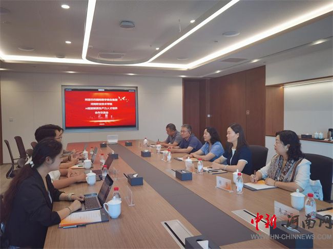 中新河南網(wǎng)8月19日電(朱函兵、謝芳) 8月15日上午,河南職業(yè)技術(shù)學(xué)院黨委副書記、校長(zhǎng)夏新顏帶隊(duì)赴阿里巴巴總部開展校企合作洽談。阿里巴巴國(guó)際數(shù)字商業(yè)集團(tuán)AI Business生態(tài)負(fù)責(zé)人黎子豪、高校事務(wù)負(fù)責(zé)人劉辛銘、項(xiàng)目運(yùn)營(yíng)專家丁璐、培訓(xùn)認(rèn)證專家鄭王含,學(xué)校發(fā)展規(guī)劃處、數(shù)字創(chuàng)意與設(shè)計(jì)學(xué)院以及省級(jí)科研平臺(tái)相關(guān)負(fù)責(zé)同志一同參加座談會(huì)。