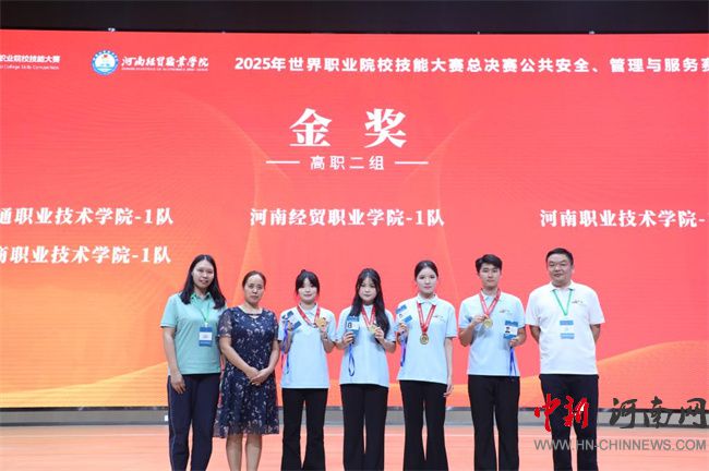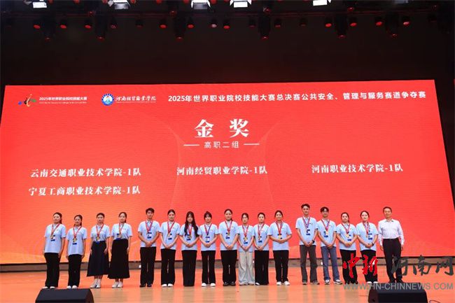 中新河南網(wǎng)9月1日電(徐曉陽) 8月29日,2025年世界職業(yè)院校技能大賽總決賽“公共安全、管理與服務(wù)賽道”爭奪賽在鄭州落幕。河南職業(yè)技術(shù)學(xué)院經(jīng)濟管理學(xué)院參賽團隊與來自全國30個省(自治區(qū)、直轄市)的126支高職院校參賽隊伍同臺競技,憑借精湛的專業(yè)技能、嚴謹?shù)穆殬I(yè)素養(yǎng)和突出的創(chuàng)新能力,在眾多強隊中脫穎而出,勇奪金獎。