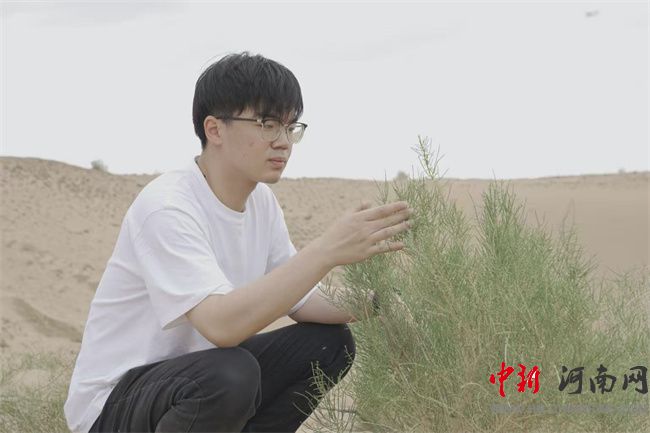 宋忠碩查看梭梭樹(shù)長(zhǎng)勢(shì)