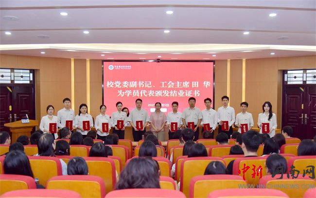 校黨委副書記、工會(huì)主席田華為參訓(xùn)學(xué)員代表頒發(fā)結(jié)業(yè)證書